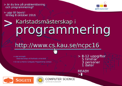 Anmälan/registrering: Följ instruktionerna på http://ncpc.idi.ntnu.no/ncpc2016/reg.html. Skicka gärna ett mail till stefan.alfredsson@kau.se för att bekräfta eller om du får problem vid anmälan. Se också förra årets instruktioner på